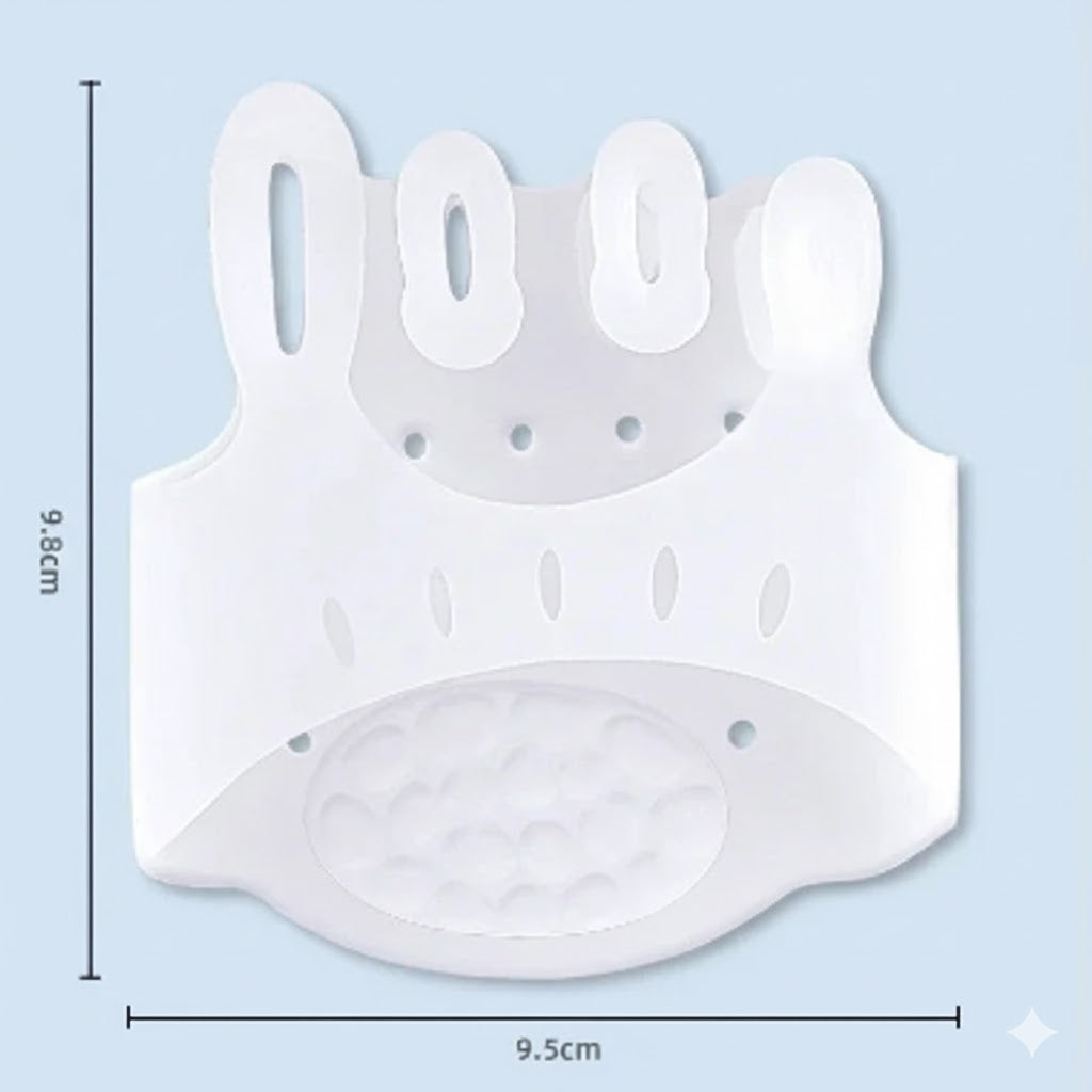 Correcção Progressiva de Joanetes: O gel de silicone médico exerce pressão suave e constante que reposiciona gradualmente o dedo grande do pé, reduzindo o ângulo de deformação característico do hallux valgus. A correcção progressiva evita cirurgias desnecessárias em casos iniciais e moderados.
