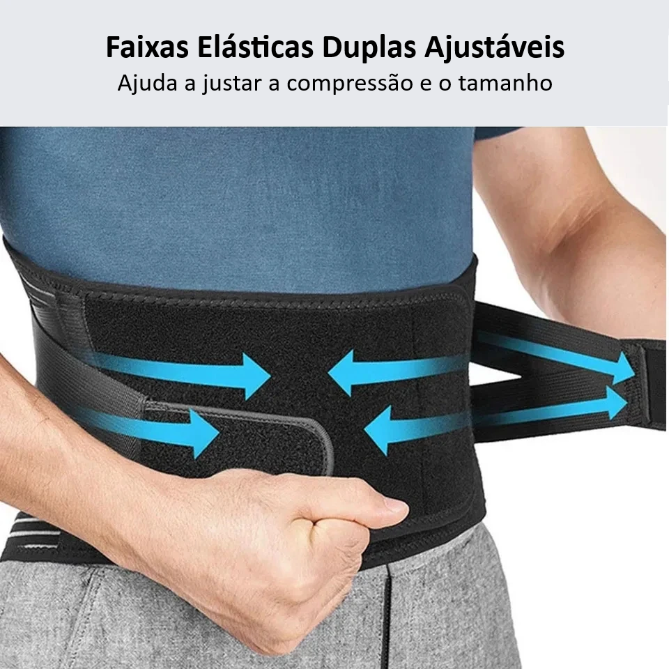 Recupere a liberdade de movimento com a Cinta Lombar Ajustável, desenvolvida com tecnologia de suporte duplo que combina descompressão espinhal, estabilização lombar e fortalecimento abdominal para alívio completo da dor nas costas.